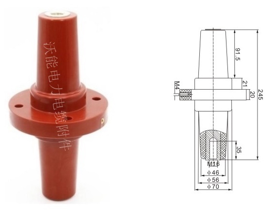 10KV630A对接套管,主要用于欧式电缆分支箱,与欧式前接头相连,可与带电指示器相连,显示母线带电状态。 其采用高品质的环氧树脂绝缘。 产品主要技术数据: